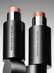 - With a cream bronzer or contour stick, like the Westman Atelier Face Trace Contour Stick, dot at the temples, under the cheekbone and jawline. Blend with a brush (try the MECCA MAX Tapered Powder Brush).
